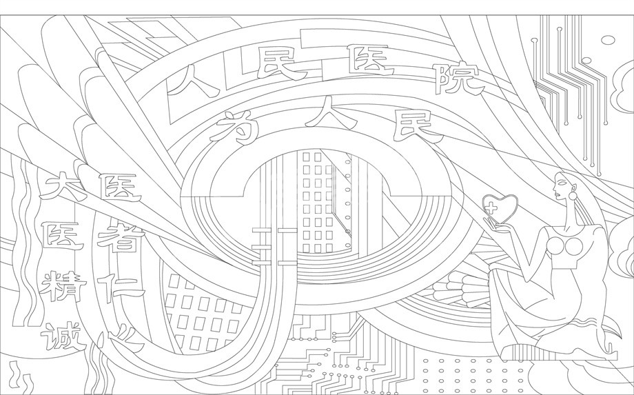 人民医院浮雕雕塑原创手绘设计稿